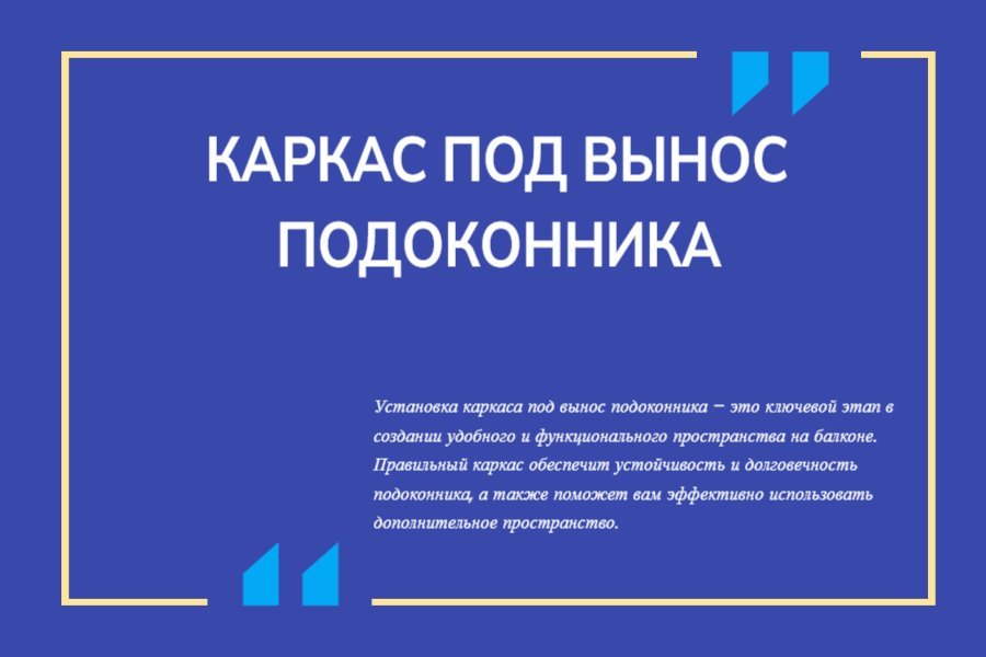 - Устойчивость и надежность: Каркас обеспечивает прочное крепление выноса подоконника, что важно для безопасности и долговечности конструкции. Он позволяет равномерно распределить нагрузку и предотвратить возможные деформации.